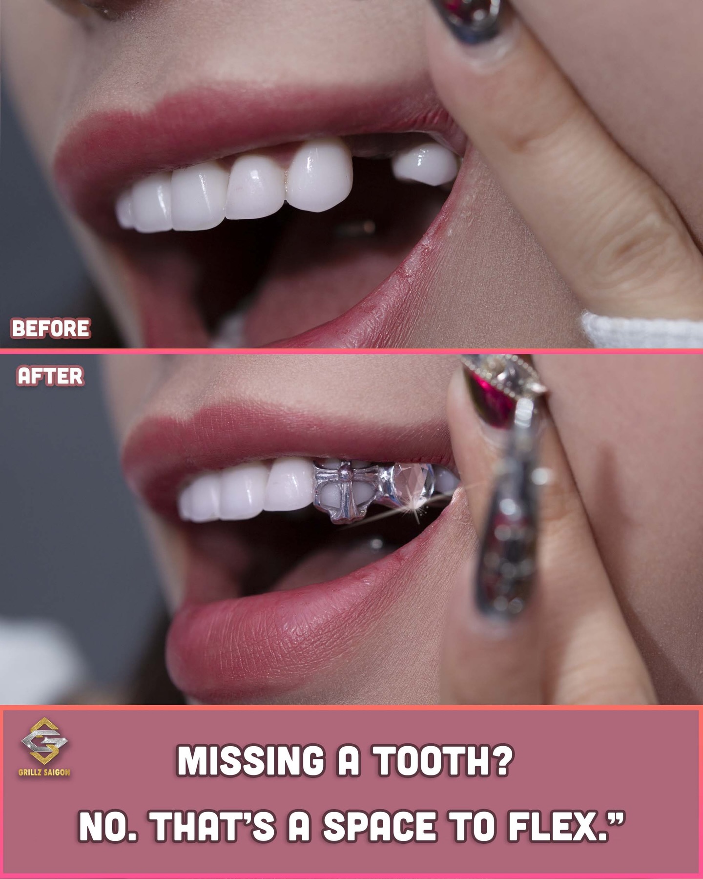 Trang sức cho Răng (Grillz Tooth) thể hiển được sức đặc biệt cho người sử dụng nhất trong nền văn hóa trang sức. Tất cả các sản phẩm Grillz của Grillz SaiGon được làm từ những vật liệu chất lượng cao nhất (có giấy tờ kiểm định) , dựa trên khuôn răng của bạn và mẫu thiết kế phù hợp để tạo ra một món đồ trang sức đặc biệt dành riêng cho bạn.