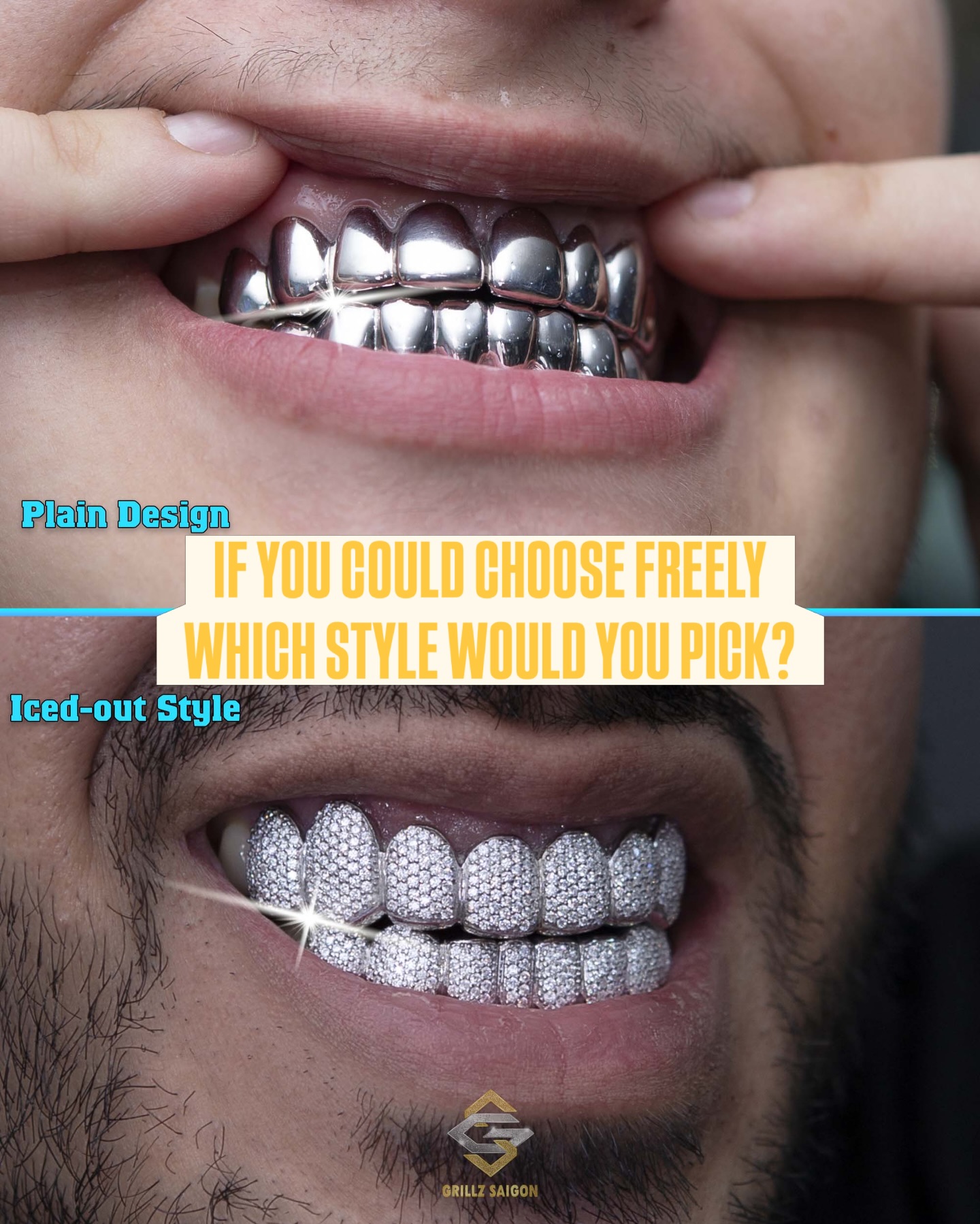 Bất kì kiểu bạn muốn bằng Bạc 925, hay một chiếc kiểu Open Face bằng vàng 18K, hay thậm chí là một bộ đầy đủ bằng Diamond Griilz, chúng tôi đều có thể biến điều đó thành hiện thực.